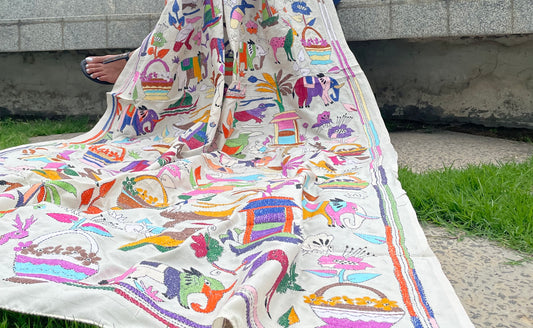 Discover the beauty of hand-embroidered kantha and nakshi kantha dupattas. Each piece is a unique masterpiece, crafted with care and tradition. Elevate your style with these one-of-a-kind treasures!